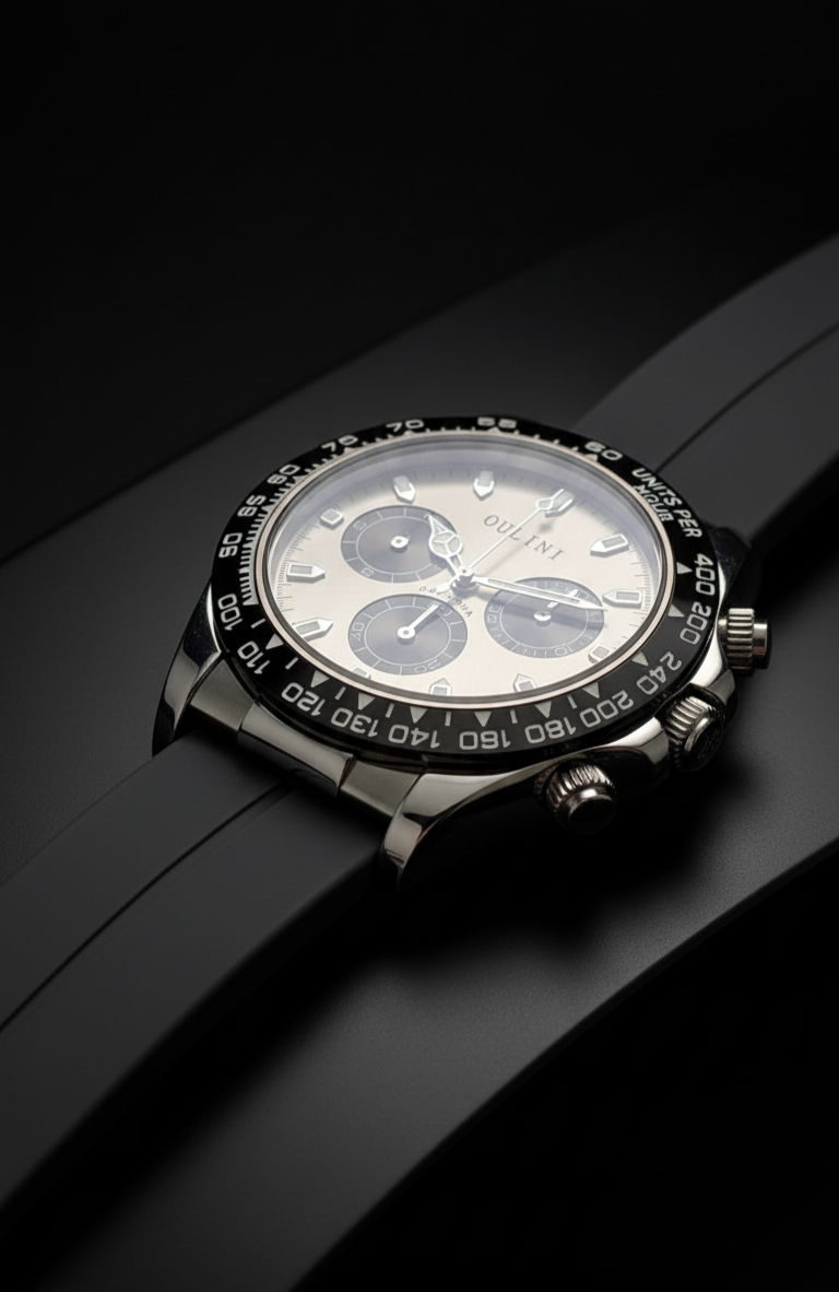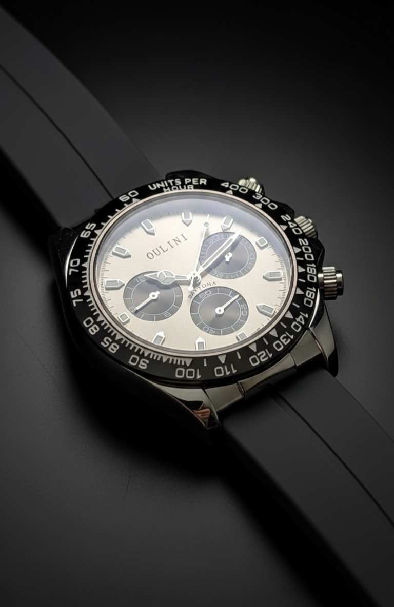 With its blend of sporty design and reliable chronograph features, The "Graphite Racer" is a versatile timepiece that will keep you on track and in style, wherever your adventures take you.
